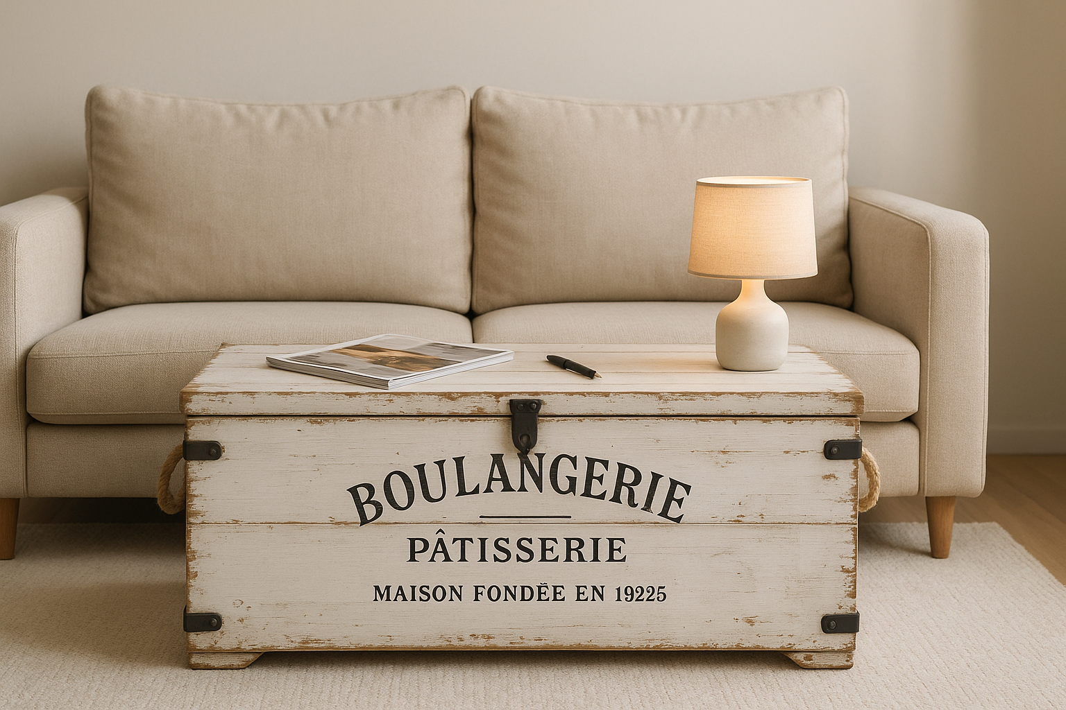 Sie verbindet Stauraum und Couchtisch in einem Möbelstück – handgefertigt, nachhaltig und mit dem besonderen Flair des Shabby-Chic.